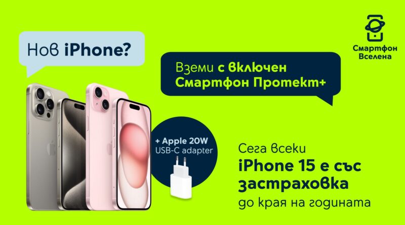 Клиентите, закупили модел от серията iPhone 15 през май ще получат застраховка „Смартфон протект+“ до края на годината и оригинален адаптер