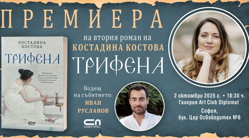 След като през 2023 година в първата си книга ни разходи из Третото българско царство с майсторски изграден сюжет, в който си дават среща непреходните теми за силата на мечтите и тежестта на дълга, сега, в „Трифена“, Костадина Костова ни връща в първото столетие от Новата ера, за да ни разкаже незабравима история за пътя на една понтийска принцеса до Перперикон.