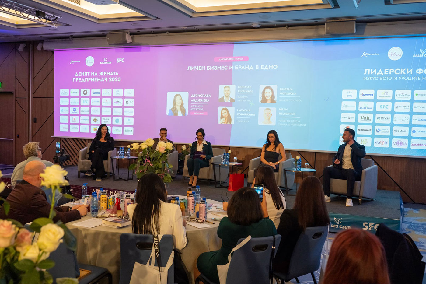 „Личен бизнес и бранд в едно“ – панелът, модериран от Десислава Авджиева, в който участниците Велизар Величков, Наталия Кобилкина, Биляна Йотовска и Иван Неделчев споделиха практически стратегии за синхронизиране на личния бранд с бизнеса, изграждане на професионален имидж и увеличаване на влияние и доверие в различни сфери на предприемачеството.