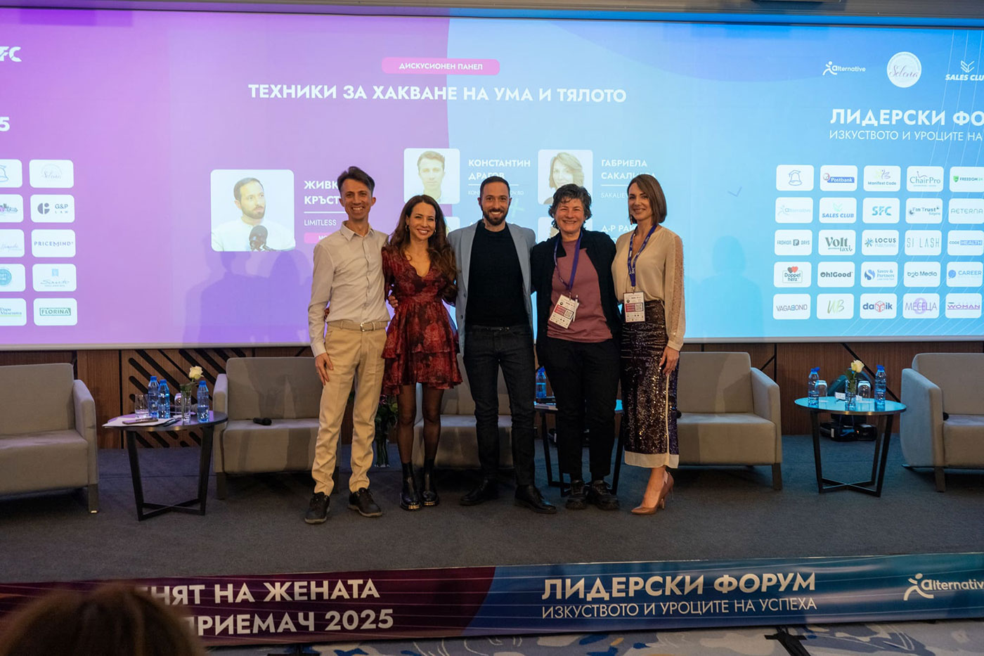 По време на дискусията „Техники за хакване на ума и тялото“ бяха разгледани практики за психическа устойчивост, управление на стреса и оптимизация на личната енергия, съчетаващи научни подходи и практически техники за подобряване на фокус, баланс и вътрешна сила. Модератор беше Живко Кръстев, а участници – Аделина Димитрова, Габриела Сакалиева, д-р Райна Стоянова и Константин Драгов.