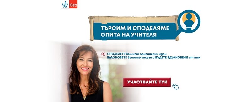 Инициативата „Търсим и споделяме опита на учителя“ е естествено продължение на мисията на издателство „Клет България“ да вдъхновява учителите и да подкрепя тяхното професионално израстване. Желаещите да се включат в нея могат да го направят, като попълнят формата в сайта на издателството: https://klett.bg.