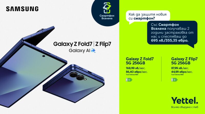 Yettel предлага Samsung Galaxy Z Flip7 и Z Fold7 с 24 месеца безплатна застраховка